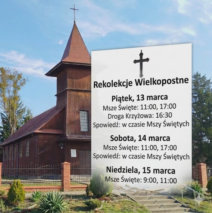 Rekolekcje Wielkopostne w naszej parafii wygłosi ks. kan. Janusz Sutryk, dziekan hański. Piątek i sobota Msze św. o godz. 11.00 i 17.00. To dni spowiedzi. Droga krzyżowa w piątek o godz. 16.30. W niedzielę Msze św. o godz. 9.00 i 11.00.